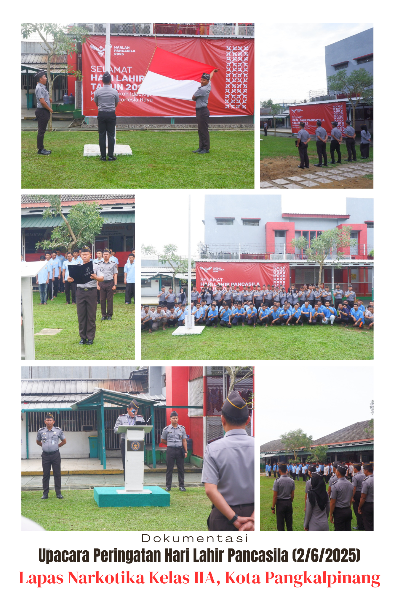 Pangkalpinang, Narasibabel.id – Lembaga Pemasyarakatan (Lapas) Narkotika Kelas IIA Pangkalpinang menggelar Upacara Peringatan Hari Lahir Pancasila, Senin (02/06). Kegiatan dilaksanakan di Lapangan Upacara Lapas Narkotika Pangkalpinang dan dipimpin langsung oleh Maman Herwaman selaku Kepala Lembaga Pemasyarakatan (Kalapas) Narkotika Kelas IIA Pangkalpinang.