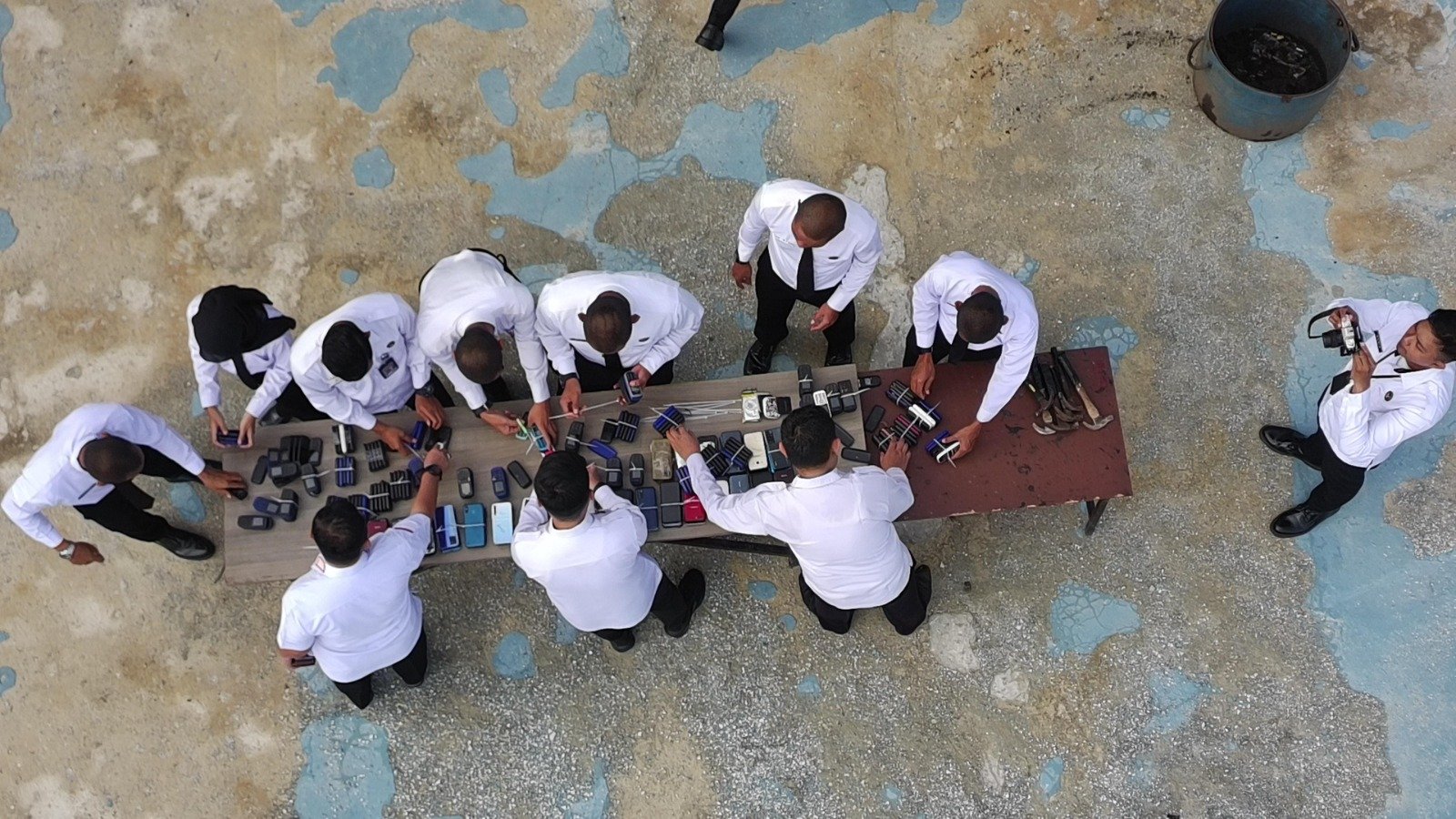 Proses pemusnahan dilakukan dengan metode menghancurkan handphone menggunakan palu, lalu merendamnya ke dalam larutan air garam untuk memastikan barang-barang tersebut tidak dapat digunakan kembali. Kegiatan ini dipimpin langsung oleh Kepala Lapas Maman Herwaman, didampingi pejabat struktural serta seluruh jajaran petugas lapas.