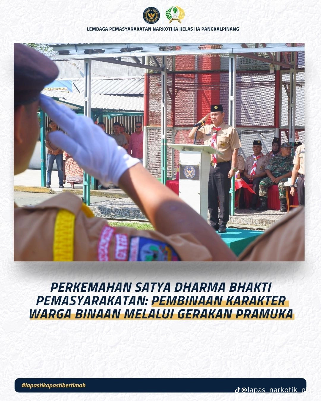 “Ikuti kegiatan ini dengan sepenuh hati, jaga keamanan dan ketertiban, jaga kekompakkan, semangat, dan junjung tinggi nilai-nilai Pemasyarakatan dan Gerakan Pramuka,” pungkasnya.