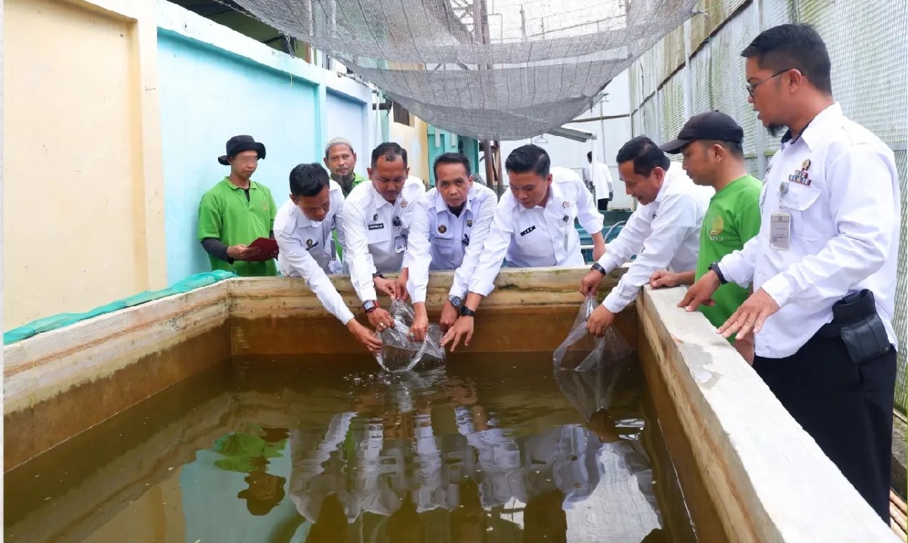 ketahanan pangan. Dalam kesempatan ini, dilakukan kegiatan penebaran benih ikan gurame di area kemandirian produktif milik Lapas, Kamis (28/8/2025).